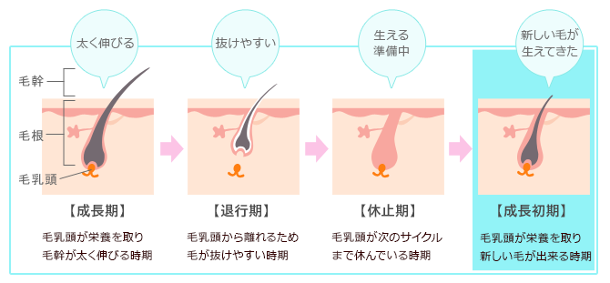 品川美容外科では、毛周期と呼ばれる毛が生え変わるサイクルに合わせて通います。