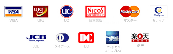 | 1回払いのみ | VISA、UFJ、UC、日本信販、マスター、セディナ、JCB、ダイナース、DC、アメリカンエキスプレス、楽天 |