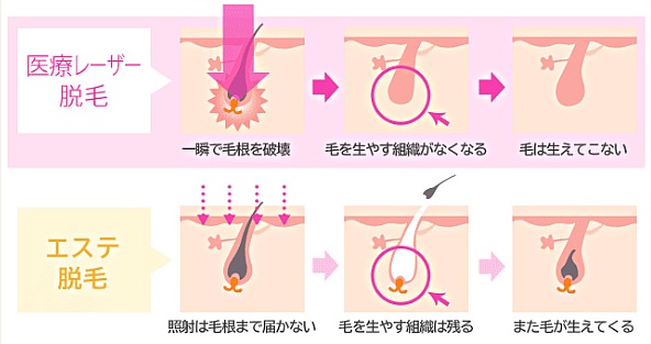 クリニックで使用される脱毛機器は、医療機関のみが使用できるマシンなので、照射パワーが強く一度の照射で毛根を破壊する行為(永久脱毛)が可能ですが…